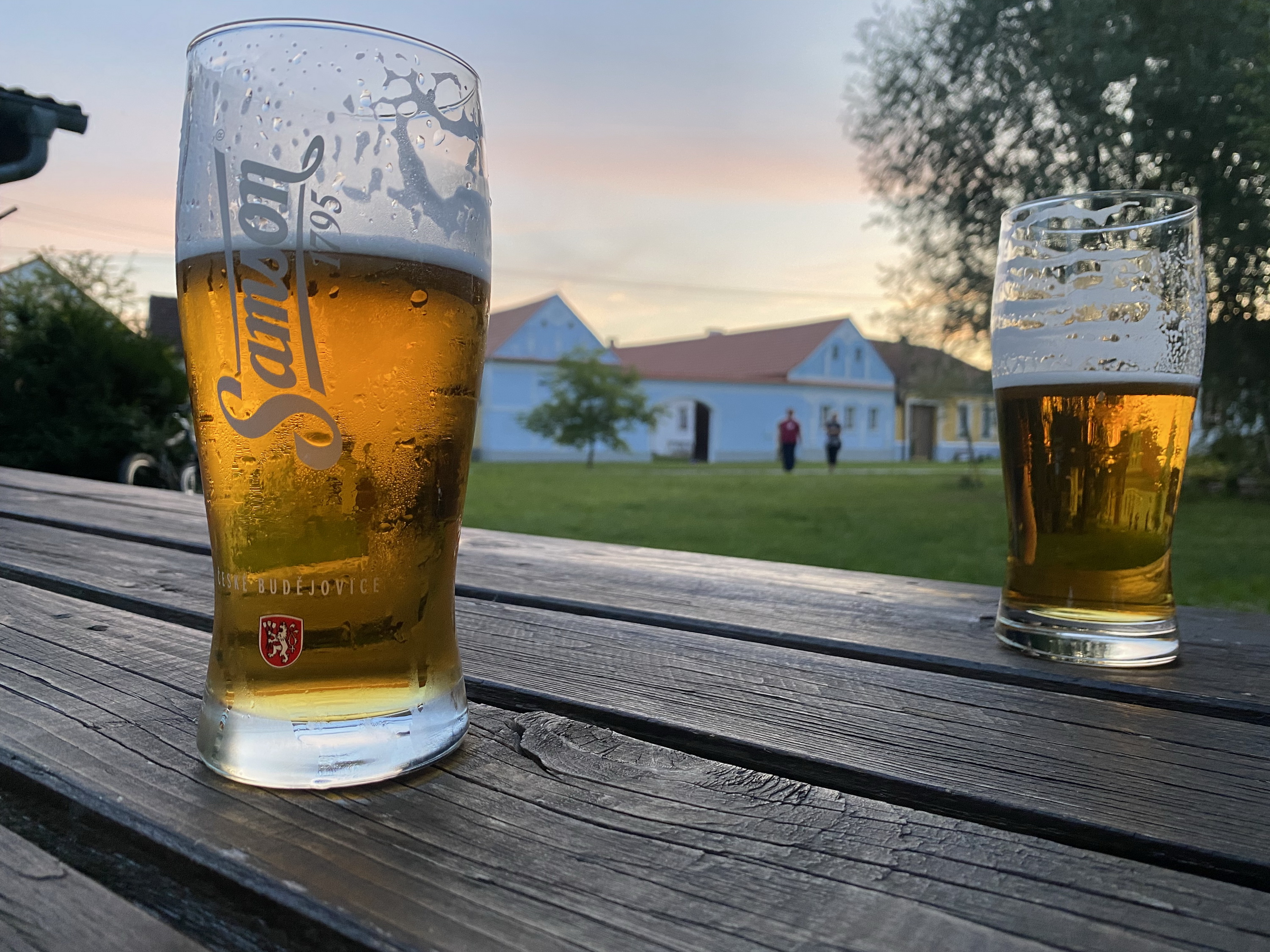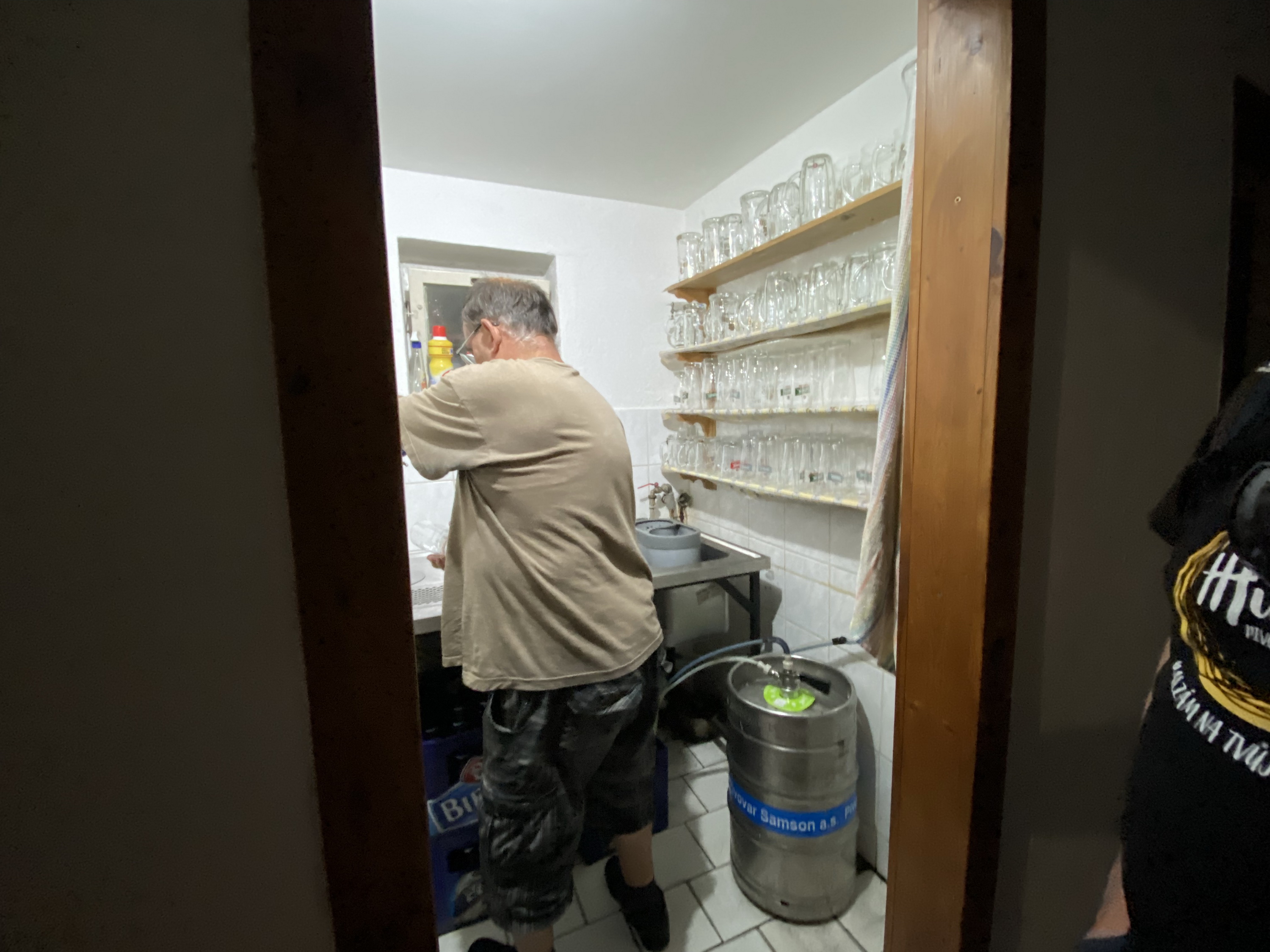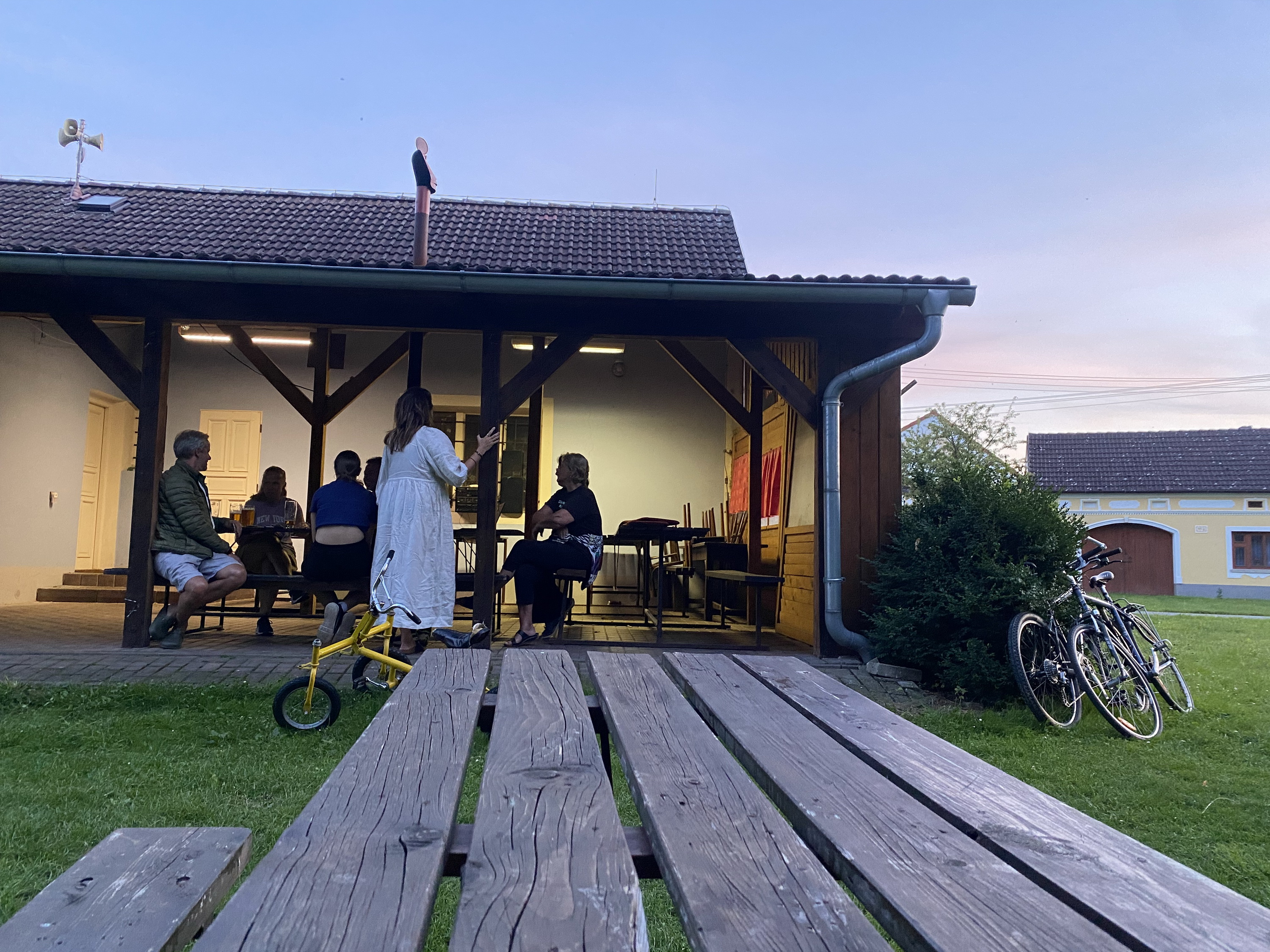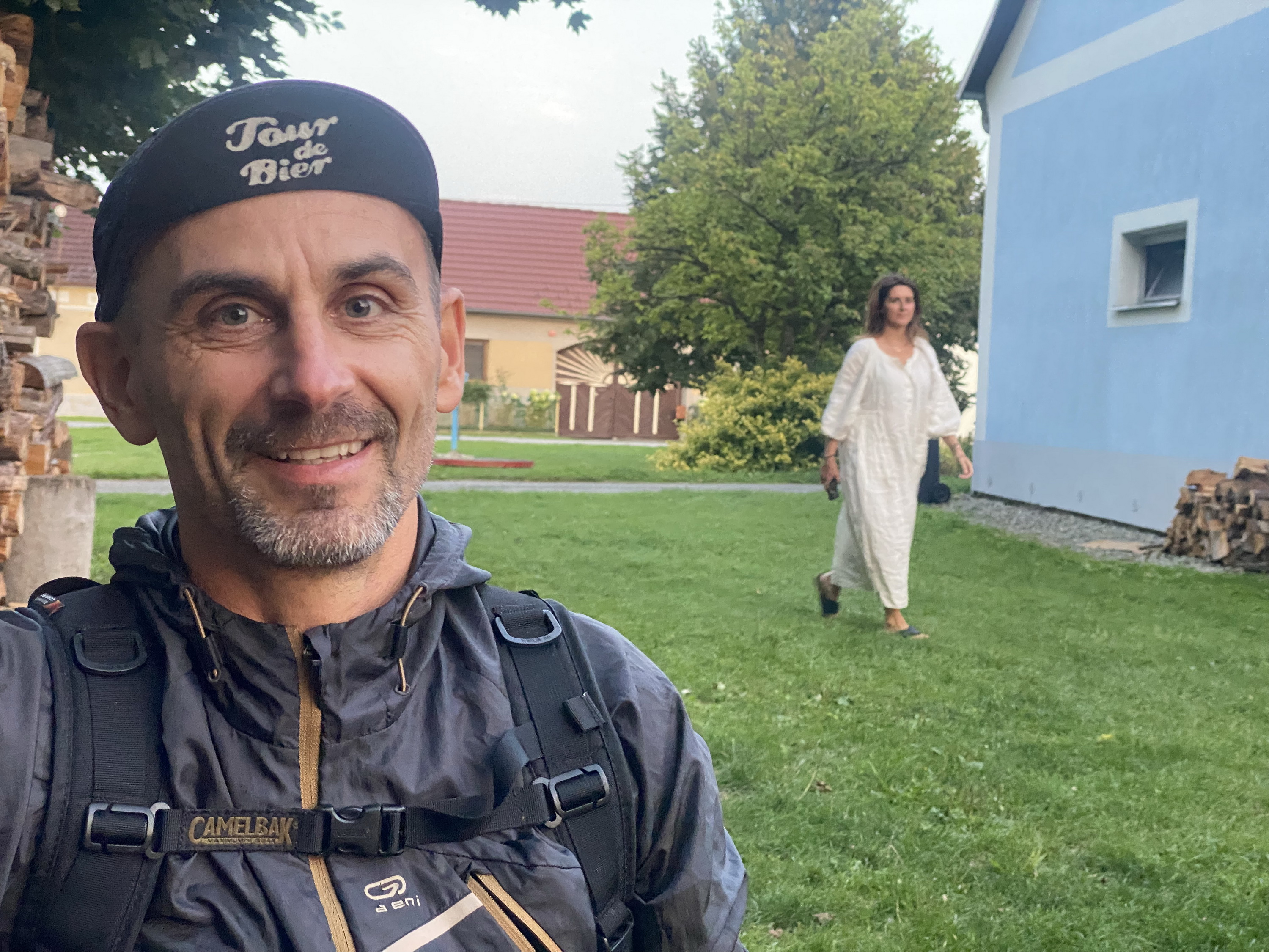 Sedáme k venkovnímu posezení. Zčásti chladným kalkulem, aby nás náhodou nevyzvali, ať si s nima taky dáme Kenta. Vychutnáváme si klidný podvečer a spokojeně rehydrujeme. Kolem probíhá známý asfaltový běžec, stále závratným tempem. Mrkneme a již to točí za návsí doleva, směr Zálší. Nebylo to ani pár minut a už tu stojí Vláďa a trošku zklamaně říká „Joaha, vy ste pomalí. No tak nic. Tak až si to docucáte, tak mi to pak dejte pod pergolu, já jdu domu.“ „A kdy tu máte vlastně otevřeno?“ „Nikdy“. „Jasný, díky moc, nashle.“