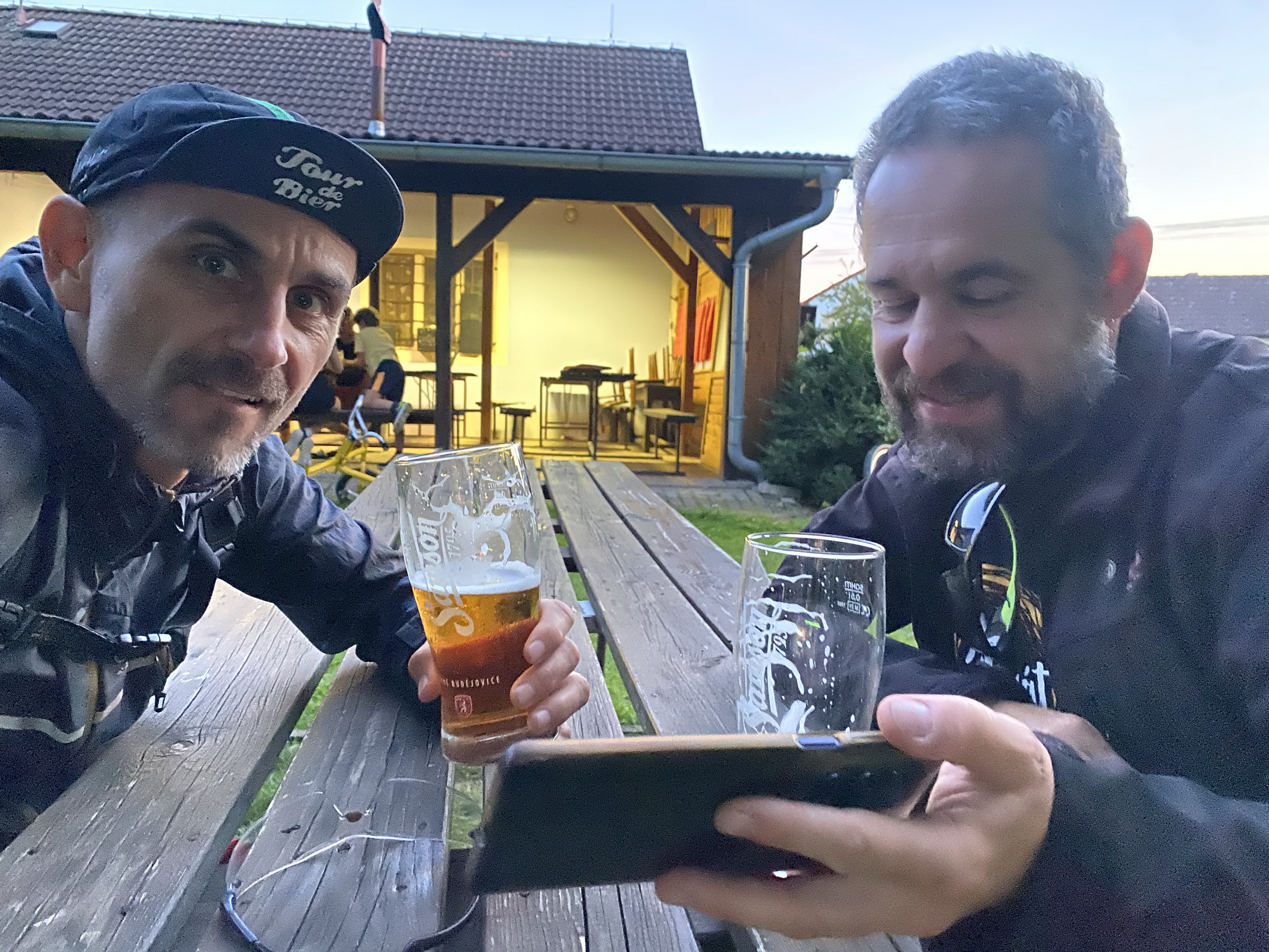 Zálší, dříve hospoda „U mopedu“. Dnes již samozřejmě jiná („ZáOlší“), ale otevřená. Brůdžiho jsem musel moc přemlouvat, abychom už nestavěli. Za pár minut už mi ale střízlivě přitakával. Někdy víc Bier, někdy víc Tour. A dnes už bylo zážitků a pohody tolik, proč si je dál ředit. Svištíme dál. Hartmanice zavřený. Hrušov má novou asfaltku, tu jsme nemohli vynechat a jak nás ta víska chuťově naladila, museli jsme okoštovat kradenou hrušku v Kněžekladech, v jedné nejmenované zahradě. Tam mají totiž ty nejúžasnější na světě! Již byla dobrá, za 14 dní bude světová! Jestli bude mít Brůdži někdy hrušku, což se můze klidně stát, rozhodně bude naroubovaná odtud.